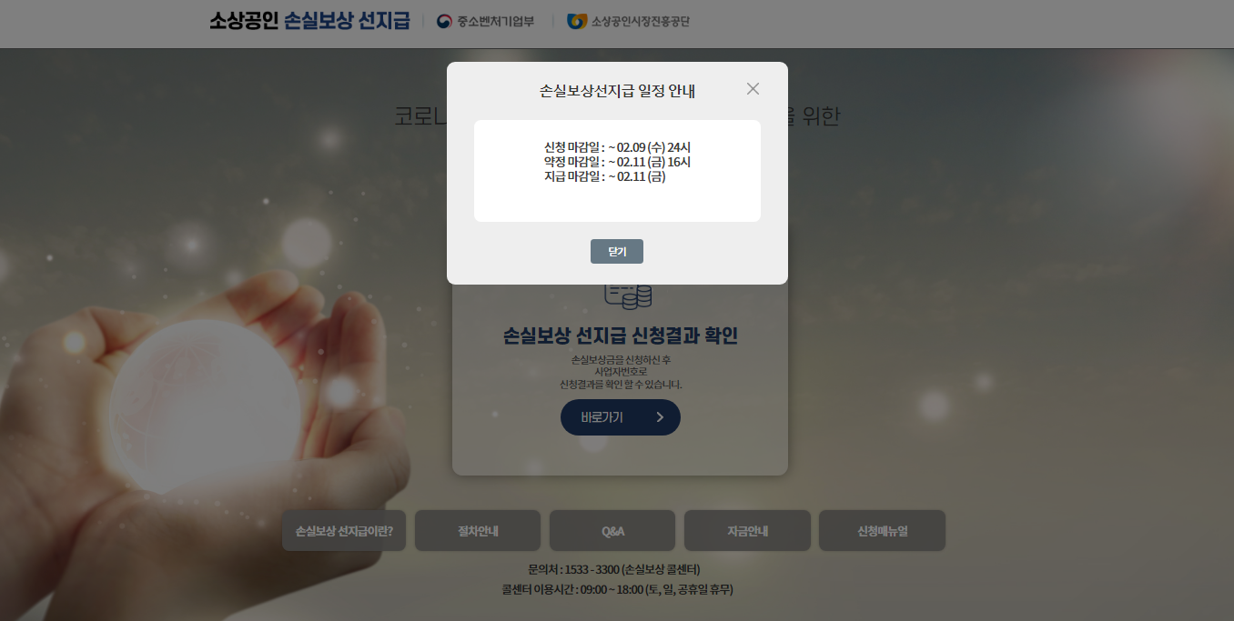 굉장히 긴급하게 지원된 코로나 피해 소상공인 손실보상 선지급이 9 일자로 신청 접수가 완료되었으며 11 일까지 약정이 완료되어야 최종 선지급을 받으실 수 있습니다. 11 일 16 : 00 시까지 잊지 마시고 진행하셨으면 합니다.